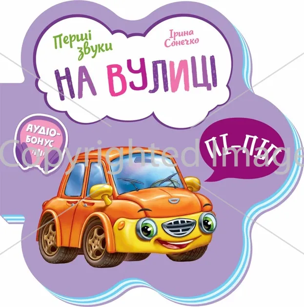Що всередині? Маленька яскрава книжка серії «Перші звуки» від Ірини Сонечко. На сторінках — картинки вулиці з транспортом, птахами, людьми і природою, супроводжені ритмічними дитячими віршиками.