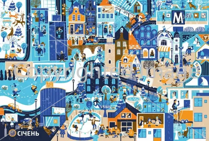 Місто живе — і в кожну пору року воно інше! Ілюстраторка Катерина Богушька показує міське життя у всій різноманітності.