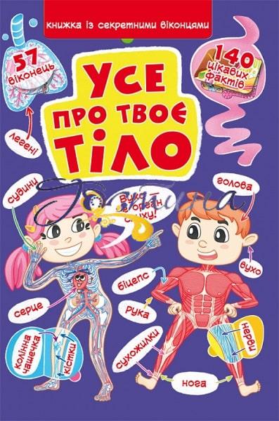 'Усе про твоє тіло' – книга із секретними віконцями. Дізнайся, як влаштоване твоє тіло! Із чого утворений наш організм? Як ми дихаємо? Де перетравлюється їжа? Доступно та цікаво ми розповімо малюкові про те, як діє його тіло. А кумедні малюнки й секретні віконця перетворять читання на захопливе заняття.