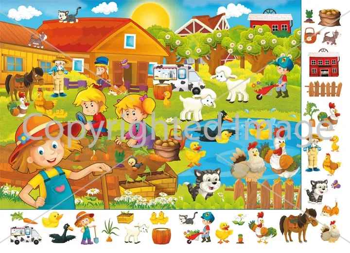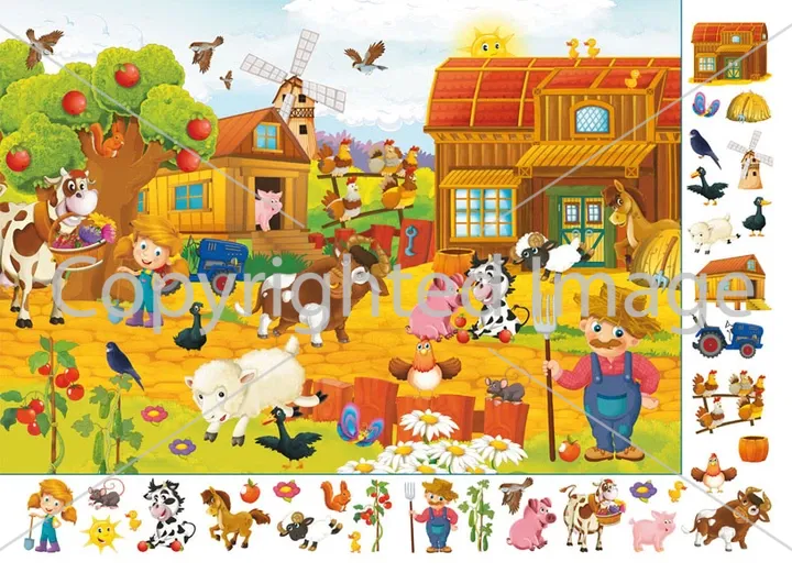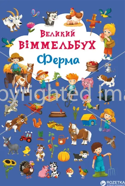 Що всередині? Корови, козочки, овечки, коні, курочки, свинки, уточки — все фермерське господарство на яскравих розворотах. Малюк вивчає свійських тварин і рослини городу через деталізовані ілюстрації без тексту.