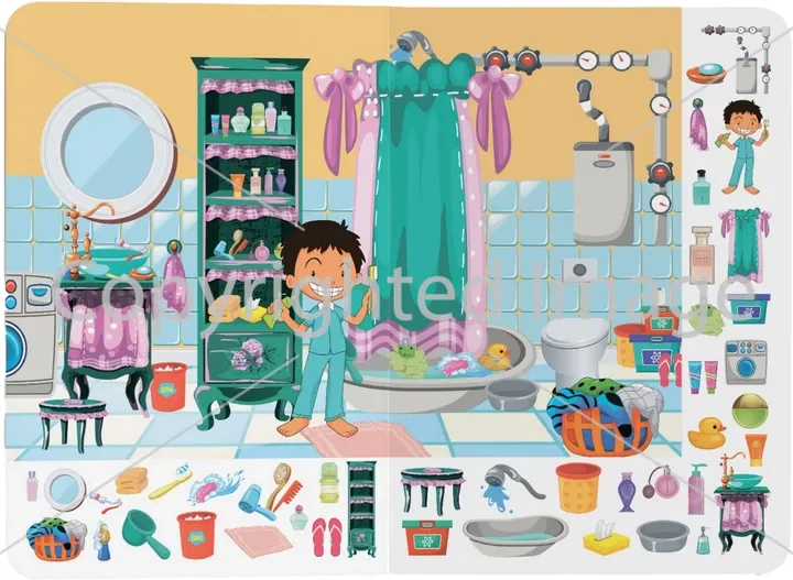 Що всередині? Кухня, вітальня, дитяча кімната, ванна, двір — на кожній сторінці десятки знайомих персонажів. Малюк впізнає те що бачить вдома і радісно розповідає про це.