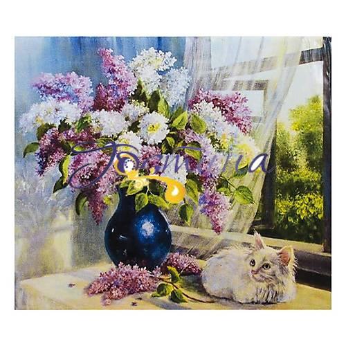 Готова картина створює особливу атмосферу і стане модним настінним прикрасою у вашому домі. Новий вид рукоділля легкий в освоєнні, не вимагає великої кількості часу для отримання готового результату, і буде цікавий як дітям, так і дорослим. У наборі: - полотно на підрамнику; - стрази всіх кольорів, необхідних для викладки картини (кожен колір в окремому, пронумерованому пакетику); - пластиковий піддон для алмазів; - таблиця відповідності кольорів і позначень алмазів; - перо для роботи з алмазами; - гелеподібної клей. Рекомендується в процесі роботи над картиною, плівку, що захищає клейку частина, знімати частинами. Алмазна мозаїка 'Кошеня і ваза' 40 * 30 см