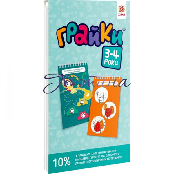 Серія – Грайки – це чудові кольорові навчально - пізнавально - розважально - розвиваючі блокнотики! 160 НАВЧАЛЬНИХ ІГOР, які сприяють розвитку мислення, концентрації уваги, вмінню порівнювати різні предмети, здійснювати 'перетворення' та вибудовувати послідовність дій. В них дитина знайде такі різноманітні завдання, як: порахувати предмети, доповнити ряди, знайти відмінності, закінчити фігури, «написати» історію з картинок, знайти пару, пройти лабіринти тощо… А зручний формат, цупкі сторінки та обкладинка, кріплення на пружині дають можливість дитині зручно користуватись блокнотом.