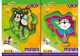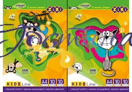 Набір картону кольорового. ТМ Zibi. Формат А4, 10 аркушів картону різних кольорів, матеріал - картон щільністю 230г / м2.