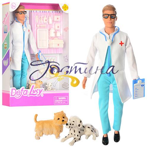 Лялька DEFA 8346B Доктор KEN такий привабливий, успішний і популярний не сидить склавши руки! Чи треба говорити наскільки важлива праця ветеринара. До нього звертаються всі, у кого тварина захворіла, або зламало лапку, або страждає зубним болем. Наш ветеринар дуже добрий, а ще він дуже любить звірів, і тому охоче приходить їм на допомогу. Можна облаштувати цілий ветеринарний кабінет, в якому лялька-ветеринар буде приймати своїх дрібних пацієнтів.