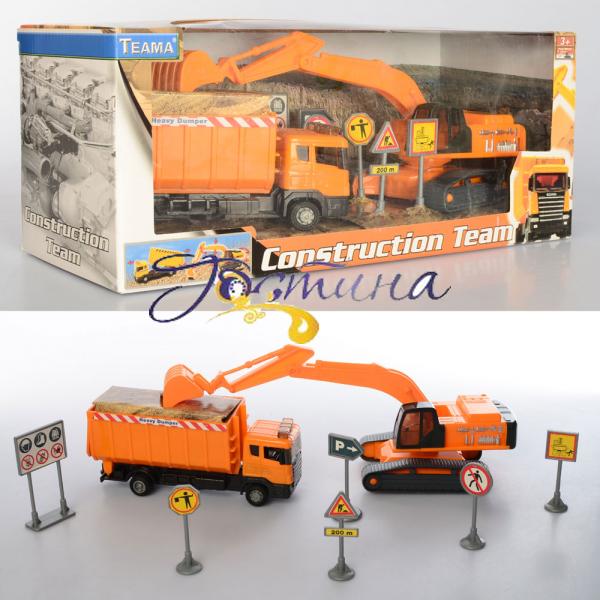 Набір будтехніки 22492 2шт, 16см і 11см, дор.знакі, в коробці. Розмір - 36-15-11см, Матеріал - пластмаса