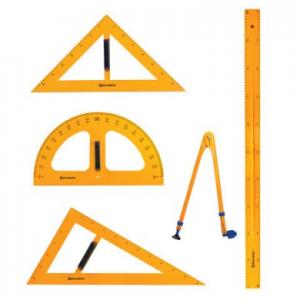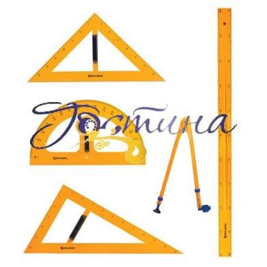 - метр демонстраційний - 1шт. - трикутник класний 45*45 - 1шт - трикутник класний 30*60 - 1шт - циркуль класний - 1шт - транспортир класний - 1шт