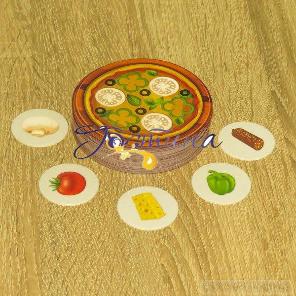 В розпорядження великих кулінарів дається п'ять свіжих інгредієнтів і 70 варіантів круглих піц. Кожна картка приховує в собі таємний інгредієнт, який помітити не так просто. Гра відмінно розвиває зорове сприйняття і реакцію, адже гравцям доведеться знаходити правильні інгредієнти і першими забирати їх на руки. Хто збере найбільше карток до кінця раунду, той і переможець!