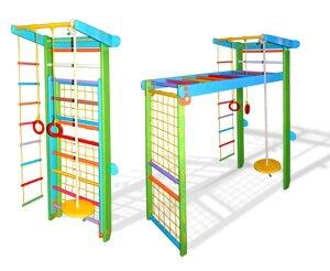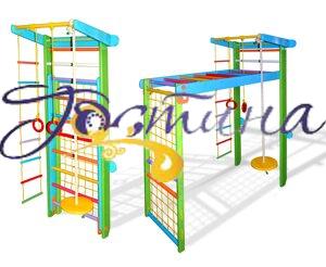 Спортивний куточок ТрансформерМатеріал спортивного куточка Трансформер: 1. Боковини шведської стінки - сосна 2.Перекладіни шведської стінки - деревина твердих порід ясен, клен, бук. 3. Кільця - фанера. 4. Канат (діаметр 22мм) - натуральна бавовна. У комплектацію входить: 1. Шведська стінка з турніком. 2. Піратська сітка з 2-ух частин (висота сітки 170см) 3. Рукохід (довжина рукохіду 160см) 4. Мотузковий набір. 5. Кріплення Гойдалка-диск у вартість не входить. Допустимі динамічні навантаження: 1. На прекладіни шведської стінки і турнік - 100кг. 2. На мотузковий набір - 60кг 3. На рукоход - 50кг. Габаритні розміри спортивного куточка: 1. Висота шведської стінки з турником - 225см. 2. Ширина по відповідної планки 102 см.