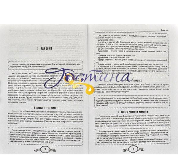 Книга Ольги Франко «Перша українська загально-практична кухня» одразу після виходу в світ 1929 року стала дуже популярною. Її зачитували до дірок. Кожна галицька господиня вважала за необхідне мати її на своїй кухні. Сьогодні книга Ольги Франко повертається до читача у своєму первозданному варіанті, не обкраяна і не перекручена, у всій автентичності її порад, рекомендацій та рецептів. Вона отримує своє «друге» дихання завдяки коментарям відомої львівської кулінарної блоґерки Маріанни Душар, дослідниці галицької кулінарної традиції та авторки блоґу PaniStefa.com. Книгу проілюстровано сучасними фотографіями і рисунками з оригінального видання.