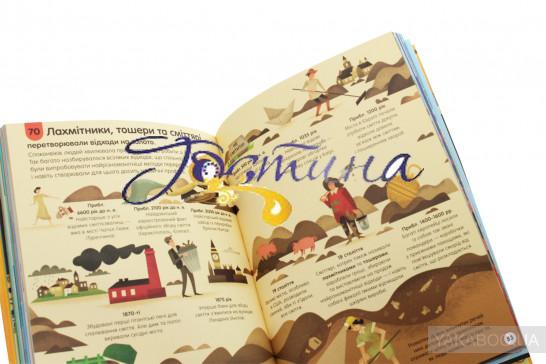 Книжка «100 фактів про історію», яка продовжує серію «100 фактів про...». Найцікавіші факти з історії обирали Лора Коуен, Алекс Фріт, Мінна Лейсі, Джером Мартін. Переклала для українського читача Слава Світова. У книжці йдеться про минуле нашого людства, розмаїття трагічного і величного, смішного і повчального. Історія постане перед тобою у сильних постатях, кумедних випадках, сміливих вчинках, цікавих закономірностях. Дивовижна інформація з цього видання не просто збагатить твої знання, але й допоможе зрозуміти сьогодення. Чому цибулини тюльпанів коштували більше, ніж маєтки? За що голубка отримала військову нагороду? Скільки років потрібно було для виготовлення книжки? Відповіді на ці та інші питання ви знайдете в середині книжки. «100 фактів про історію» має на меті показати, що історія — це не тільки дати та персоналії, але й детективні історії, надихаючі приклади та навіть смішні випадки. Нагадаємо, що у видавництві вийшли дві книги цієї серії: «100 фактів про числа, комп’ютери та програмування» і «100 фактів про космос».