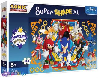 Пазли на 104 великих елементи божевільної форми із зображенням синього їжачка Соніка та інших головних персонажів популярної японської серії відеоігор та медіафраншизи від компанії Sega. У складеному вигляді розмір картинки складає 60х40 см.