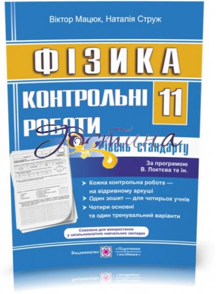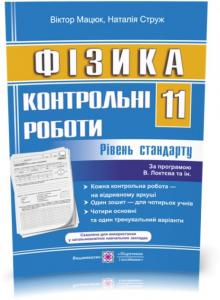 Посібник містить 9 тематичних контрольних робіт з фізики для учнів 11 класу. Кожна контрольна робота складається із п'яти рівноцінних варіантів. Завдання дібрано відповідно до чинної програми розробленої авторським колективом під керівництвом В. М. Локтєва.
