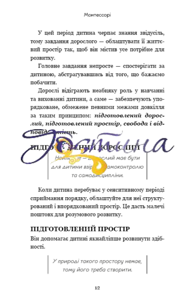 Про методику Монтессорі чули практично всі батьки. Однак далеко не у всіх є змога забезпечити своєму малюкові навчання у спеціальних закладах, які працюють на основі цієї методики. Проте є хороша новина: для забезпечення всебічного розвитку дитини не обов’язково віддавати її в «монтессорівський» дитсадок чи водити в групи — це можна робити самому вдома. Допоможе в цьому книга з методичними порадами «Монтессорі. 150 занять із малюком удома. 0–4 роки».