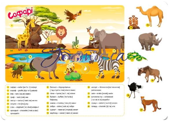 Англійська мова - це дивовижна картина всесвіту, відмінна від нашої. І її можна цілком побачити тільки завдяки великим лексичному запасу. Цей тренажер з англійської мови дозволить легко вивчити нові слова, просто читаючи їх українською мовою. Кольорові ілюстрації вказують на матеріал, зроблять процес навчання легким і захоплюючим, а наклейки додають інтерактивності.