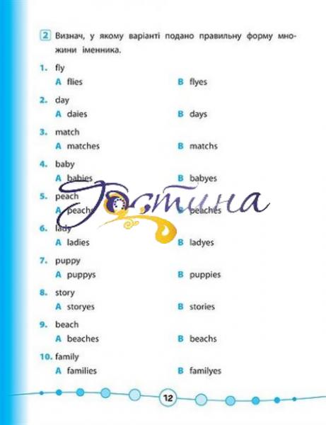 Ця книга допоможе учням іншого класу успішно підготуватися до підсумкових тестових завдань з англійської мови в молодшій школі. У виданні міститься довідковий матеріал до кожної тими, підготовчі вправи (завдання з відкритою формою відповіді та творчі завдання), а також тематичні тести. Кожен розділ упорядковано відповідно до нової програми Міністерства освіти і науки України.