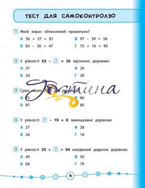Видання допоможе учням іншого класу успішно підготуватися до підсумкових тестових завдань з математики у початковій школі. У книзі містяться довідкові матеріали до кожної тими, підготовчі вправи (завдання з відкритою формою відповіді та творчі завдання), а також тематичні тести. Видання стане у пригоді молодшим школярам, їхнім батькам та вчителям.