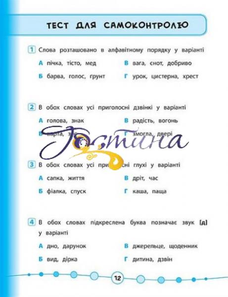 Ця книга допоможе учням іншого класу успішно підготуватися до підсумкових тестових завдань з української мови в молодшій школі. У виданні міститься довідковий матеріал до кожної тими, підготовчі вправи (завдання з відкритою формою відповіді та творчі завдання), а також тематичні тести. Кожен розділ упорядковано відповідно до нової програми Міністерства освіти і науки України.