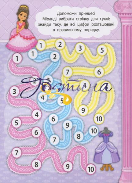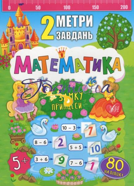 Книжка «2 метри завдань. Математика. У замку принцеси» допоможе відпрацювати математичні навички. Під годину зайняти дівчатка зможуть завітати до казкового замку принцеси й порахувати всі її прикраси до 10, порівнювати числа, розв'язків язувати прості приклади на додавання та віднімання, а також повторити поняття висоти та геометричні фігури.
