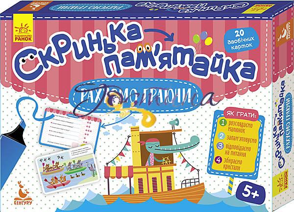 20 ламминированых багаторазових навчально-розвиваючих карток 170х110 мм. З одного боку зображено картинка з акцентом на певні елементи. За допомогою неї, необхідно порахувати предмети. З іншого боку картки знаходяться тематичні питання. За кожну правильну відповідь йде певна кількість балів, яку записується фломастером на картці. Все це можна легко стерти вологою серветкою.