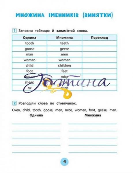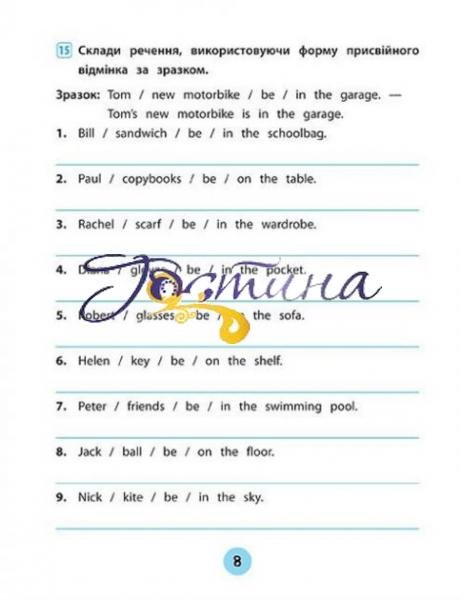 Посібник допоможе учням 3 класу розвинути й удосконалити навички утворення множини іменників і присвійного відмінка, теперішнього й минулого простих часів, а також використання конструкції «there is / there are».