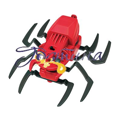 Під час складання робопаука ви познайомитеся з основними принципами механіки. У коробці ви знайдете всі необхідні деталі механізму. Вам також знадобиться невелика викрутка Phillips, дві батареї AAA та кілька невеликих монет для грузила. Мотор крутить колеса всередині павука і вони штовхають його вгору мотузкою. Усередині двигуна в батарейному відсіку є спеціальний перемикач, який змінює напрямок руху робота. Коли він досягає обмежувача і впирається в нього, перемикач спрацьовує, і робот-павук повзає в іншу сторону.