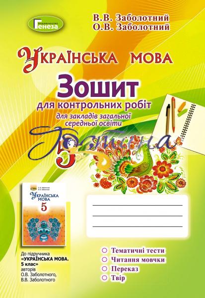 5 клас Заболотний В. В. Українська мова. Зошит для контрольних робіт