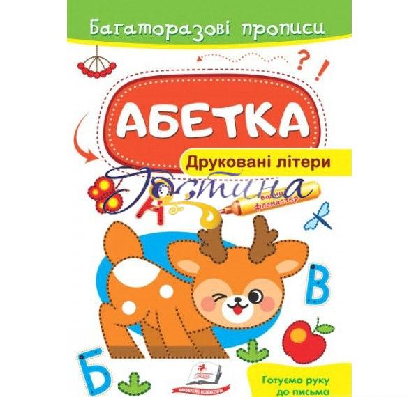 Видання для організації дозвілля "Абетка. Друковані літери. Багаторазові прописи" серії "Готуємо руку до письма" призначено для дітей дошкільного віку.