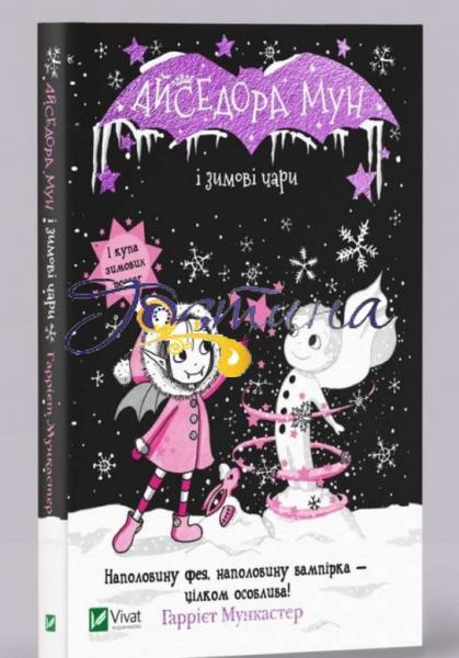 Її мама — фея, а тато — вампір, а вона схожа на них обох. На гостини до Айседори завітала зимова фея тітка Кришталіна і створила у саду магічний льодовий палац. А з чарівного снігу Айседора зліпила Сніговика, який раптово ожив. Але ж сніг не може лежати вічно. Чи зуміє Айседора врятувати нового друга, перш ніж він розтане? Наполовину фея, наполовину вампірка Айседора Мун повертається! Героїня – особлива і не така, як всі. Вона не підходить під стандарти життя фей, вампірів або людей. Проте, це не заважає їй бути щасливою, знаходити нових друзів та розважатись. Книжка перекладена майже на 30 мов, зокрема іспанську, італійську, румунську та японську. Обкладинка прикрашена фольгою та блискітками, а в середині гарні чорно-рожеві ілюстрації і великий шрифт, що спонукає до самостійного читання.