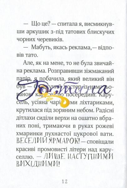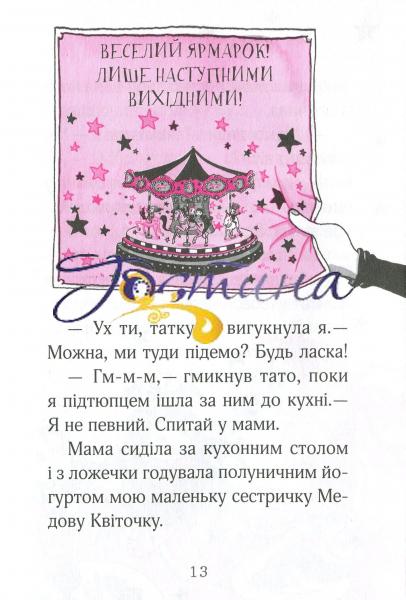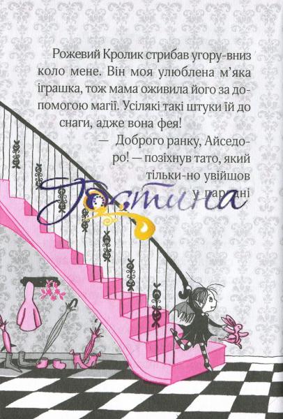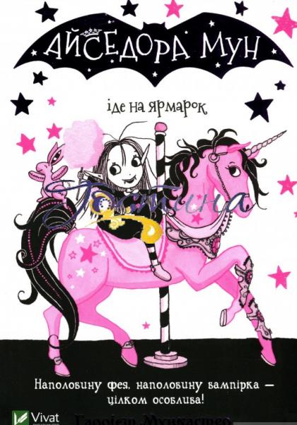 Її мама – фея, а тато – вампір, а вона схожа на них обох. Разом із родиною Айседора вперше в житті вирушає на ярмарок. Та замість веселощів там вона побачила похмурі обличчя, старі намети і майже поламані атракціони. Саме час застосувати чарівну паличку або ж дрібку відьмацького зілля, щоб зробити ярмарок по-справжньому веселим. Але люди точно не звикли до магічних атракціонів і дивацтв. Що ж піде не так? Наполовину фея, наполовину вампірка Айседора Мун повертається! Героїня – особлива і не така, як всі. Вона не підходить під стандарти життя фей, вампірів або людей. Проте, це не заважає їй бути щасливою, знаходити нових друзів та розважатись. Книжка перекладена майже на 30 мов, зокрема іспанську, італійську, румунську та японську. Обкладинка прикрашена фольгою та блискітками, а в середині гарні чорно-рожеві ілюстрації і великий шрифт, що спонукає до самостійного читання.