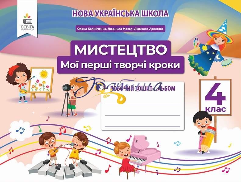 Робочий зошит-альбом Мої перші творчі кроки 4 клас Мистецтво НУШ Калініченко О. Освіта. Робочий зошит-альбом укладено відповідно до підручника «Мистецтво. 4 клас» (О. В. Калініченко, Л.С. Аристова). Він є невід’ємною частиною навчального комплекту.