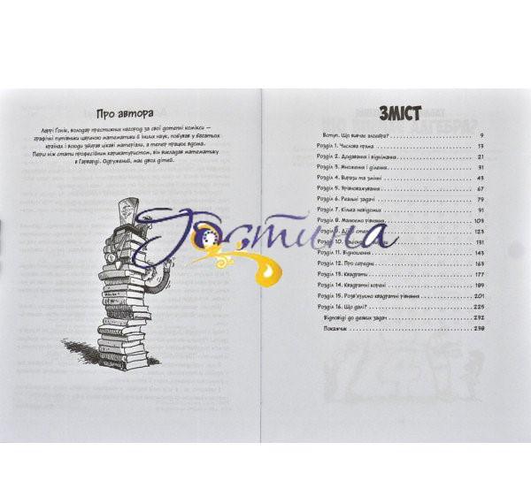 Автор з притаманним йому гумором розповідає про знаменитих математиків і наводить приклади практичного застосування «цариці наук» у повсякденні. Унікальна здатність Ґоніка подавати складний матеріал весело, цікаво і доступно, та ще й у структурованому вигляді, робить цю книжку чудовим посібником для школярів, а також для всіх, хто прагне й далі розвивати свої математичні здібності.