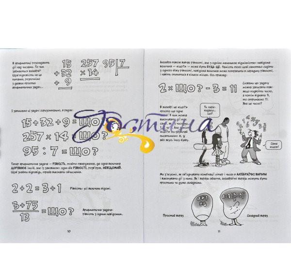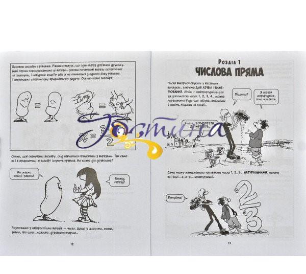 Нова книга відомого карикатуриста Ларрі Ґоніка, що вивчав і викладав математику в Гарвардському університеті, — це цікавий курс алгебри, що охоплює основні теми шкільної програми, зокрема лінійні рівняння, многочлени, квадратні рівняння і побудови графіків.