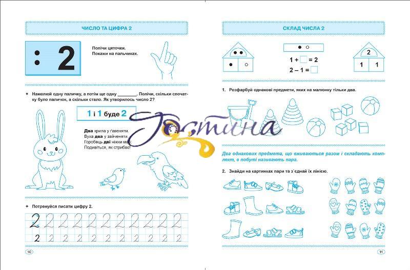 Мета цього посібника — допомогти вам навчити дитину правилам лічби, ознайомити малюка з основними математичними поняттями. Виконуючи прості, але ефективні вправи, дитина вивчить числа і цифри в межах 10, потренується їх писати, навчиться визначати склад чисел, складати і розв’язувати найпростіші задачі. Закріпити здобуті знання можна за допомогою ігор, які подані наприкінці книги. Займаючись з малюком, враховуйте, що навчання має викликати тільки позитивні емоції. Не перевантажуйте дитину, не забувайте хвалити, якщо вдається виконати правильно завдання, не вдається — допоможіть, враховуйте індивідуальні особливості малюка. Увага! Всі текстові завдання призначені для читання дорослими.