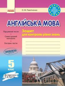 РАНОК Навчальна література Англійська мова. 5 клас. Зошит для контролю рівня знань (до підручника О. Д. Карпюк) - Павліченко О.М. (9786170959430) И141043УА