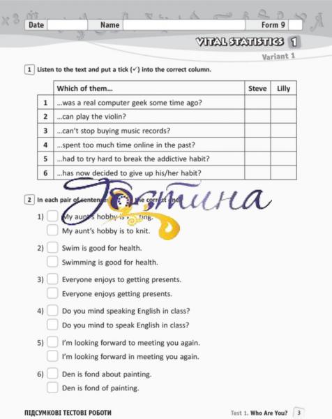 Особливості зошита для контрольних робіт наступні: