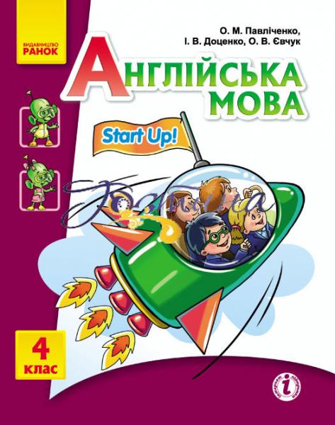 Підручник (автори Павліченко О.М., Доценко І.В., Євчук О.В.) є складовою навчально-методичного комплекту «Start Up!» разом із робочим зошитом, тестовим зошитом, книгою для читання, книгою для вчителя, комплектом флеш-карток та компакт-диском з аудіозаписами фонетичних вправ і вправ для аудіювання. Уроки побудовано з урахуванням комунікативної й діяльнісної спрямованості та кроскультурного компонента. Видання відповідає віковим особливостям учнів, містить багато цікавих завдань, ігор, пісень і віршів. Для учнів 4 класів загальноосвітніх навчальних закладів, учителів англійської мови.