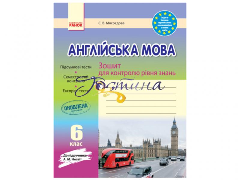 Зошит для контролю рівня знань, укладений до підручника А. М. Несвіт «Англійська мова. 6 клас», відповідає чинній програмі з іноземних мов для 6 класу загальноосвітніх навчальних закладів з урахуванням останніх змін. Він містить тести за кожною з тем підручника, семестрові й експрес-тести з англійської мови для учнів 6 класів. До зошита включено завдання, побудовані на зразок зовнішнього незалежного оцінювання, що допоможе школярам навчатися працювати з тестами.
