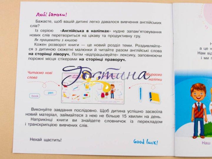 Хочете, щоб вашій дитині легко давалося вивчення англійських слів? З серією книг "Англійська в наклейках" нудне є ятовування нових слів перетвориться в цікаву і продуктивну гру. Як працювати з книгою? Кожен розворот книги - це новий розділ тими. Розглядайте з дитиною сюжетні малюнки і читайте разом англійські слова на сторінці ліворуч. Потім "відпрацьовуйте" лексику, заповнюючи порожні місця стікерами на сторінці праворуч. Виконайте завдання послідовно. Щоб дитина успішно засвоїла новий матеріал, займайтеся з ним не більше 15 хвилин в день. В кінці книги ви знайдете словничок з перекладом і транскрипцією вивчених слів. Більше 40 англійських слів. У кожній книзі 12 сторінок + 2 сторінки наклейок.