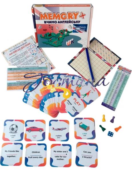 - 36 подвійних карток 7*14см з зображенням дії і підписом її українською, та з англійським перекладом і формами дієслів;
