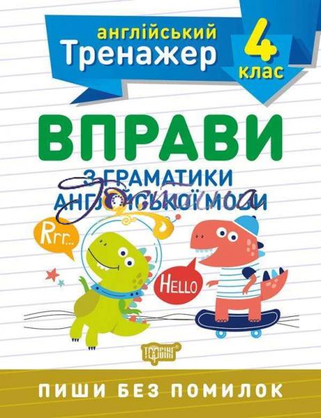 Мета цього тренувального зошита - удосконалити знання школяра з англійської мови. Завдання розміщені з поступовим ускладненням. Тренування слід проводити без перевантажень. Після виконання всіх вправ, можна оцінити свої досягнення.