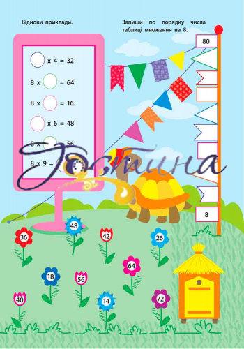 «Таблиця множення» - це ... 1. новий підхід: вивчення через практичні завдання (головоломки, ігри, завдання ...); 2. кольорове оформлення, що охоплює кожну сторінку; 3. і на додачу підказки для кращого запам'ятовування і розфарбування для самостійного оцінювання знань. Ці зошити - веселий спосіб вивчити таблицю множення!