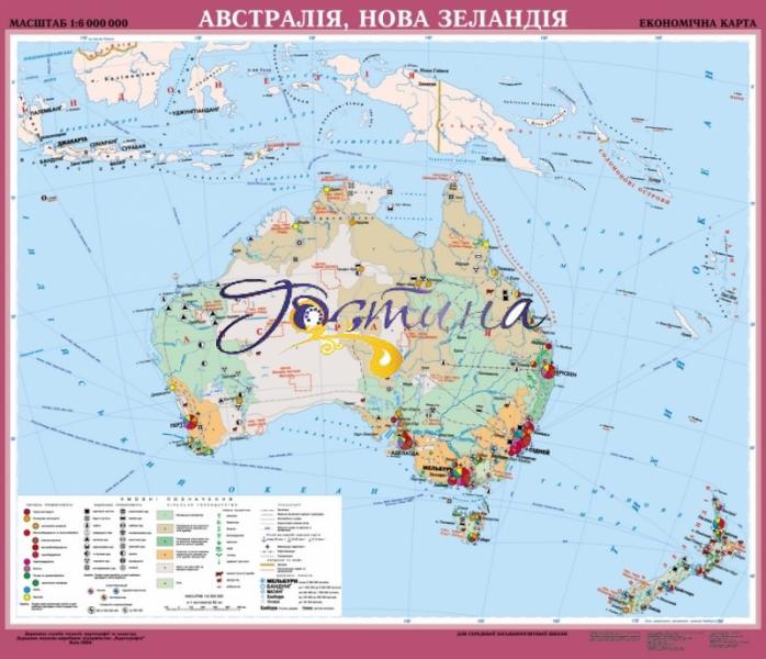 Австралія, Нова Зеландія. Економічна карта, м-б 1:6 000 000 (на планка