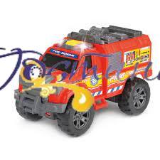 Функціональне авто "Пожежна служба" зверху має кнопку жовтого кольору за допомогою якої можна увімкнути звукові та світлові ефекти.