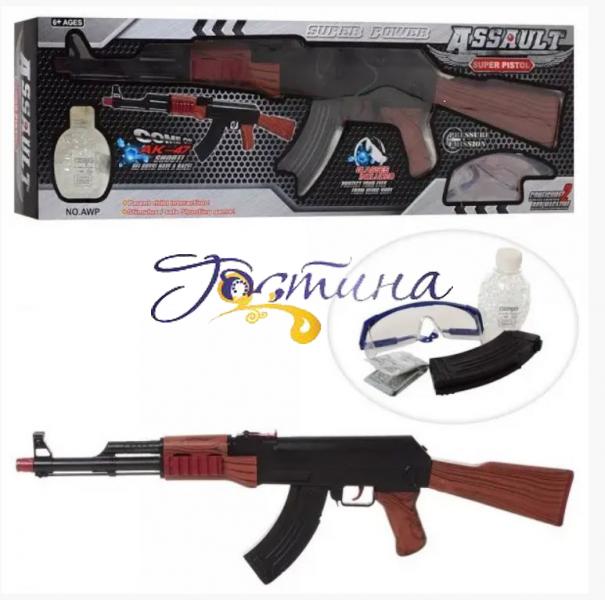 Автомат з гідрокулями ББ AWP-63 – це яскрава та стильна іграшкова зброя. Виготовлений автомат із пластику, а стріляє він гідрокулями які йдуть у комплекті. Також у комплекті йдуть окуляри. Дитина зможе використовувати дитячу зброю для активних ігор у компанії, а також грати і сама, тренуючись у стрільбі по мішені.