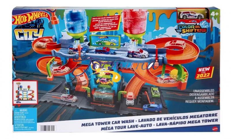| Заїжджайте на "Автомийку: Мегавежу" Hot Wheels серії City, де можна не лише помити власний автомобіль, та й повеселитися! Під'їжджайте до вежі автомийки та покрутіть ручку, щоб підняти машинку спіраллю. Нагорі розміщено два резервуари, які розпорошують гарячу та холодну воду на машинку серії "Зміни колір", магічно змінюючи її забарвлення. Поки машинки мчать миттям, вода накопичується в розміщених знизу піддонах, щоб не утворювати безлад під час гри. Поєднуйте "Автомийку: Мегавежу" з іншими наборами серії City, щоб побудувати дивовижне місто Hot Wheels. |