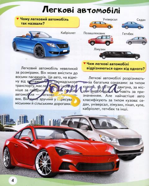 Енциклопедія в запитаннях і відповідях «Автомобілі» — чудовий помічник щодо цього, дуже грамотний, інформований і швидкий. Дуже грамотний, бо на її сторінках перевірена, актуальна, цікава інформація, корисна як малюкам 4–6 років, так і старшокласникам 10–12 років.