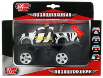 Металева модель позашляховика дасть дитині змогу влаштувати захопливу сюжетно-рольову гру та цікаво провести час. Позашляховик обладнаний дверцятами й інерційним механізмом, що дає йому змогу рухатися «своїм ходом», колесами на спеціальних пружинах для вищої прохідності, а також світловими та звуковими ефектами.