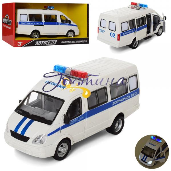 Машинка AS-1928 АвтоСвіт, 1:27, інерція, 20см, поліція, звук, світло, відкриваються двері, гумові колеса, на бат табл, в коробці. Розмір - 23,5-12-11см, Матеріал - пластмаса, Тип упаковки - Window Box.