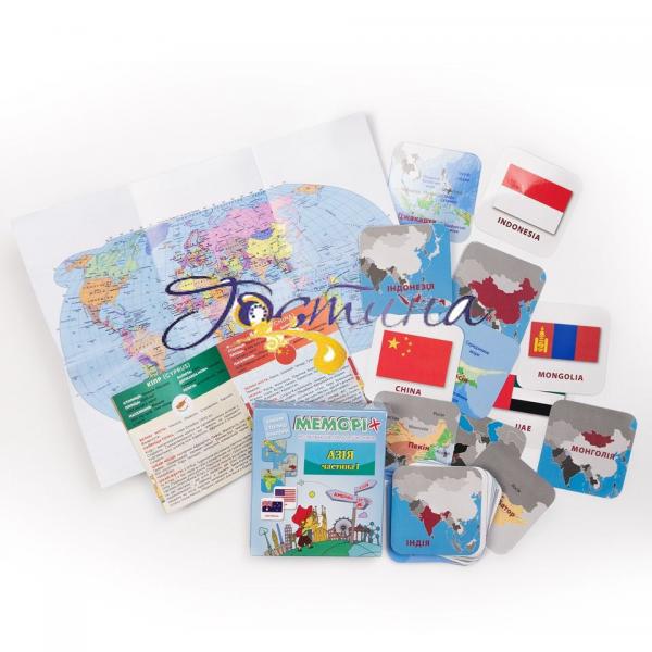 48 карток, по три на кожну з 16-ти представлених країн (місцеположення країни на континенті, столиця, прапор).
